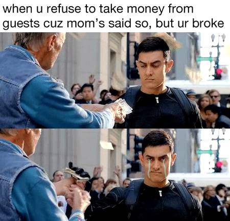 and when we take the money,mom's like that"Mana Kia tha naaπ "