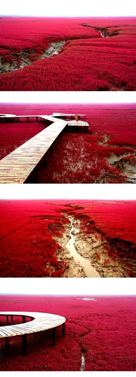 M  : A natural wonder... The red beach is located in the Liaohe river delta about -