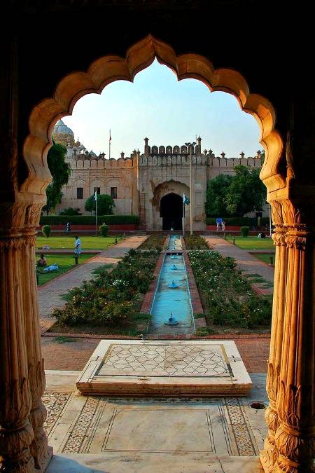 ...Roshnai gate Lahore framed through Hazuri Bagh Baradari...
