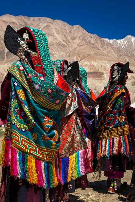 "Ladakhi women wearing the traditional clothes and headdress called peruk at the silk route festival held in Sumur ladakh, jammo and Kashmir, India. A perak is a headdress typically worn by the old aristocracy in the Himalayan Ladakh region of Asia." image uploaded on Feb. 5, 2020, 7:54 p.m. | Damadam