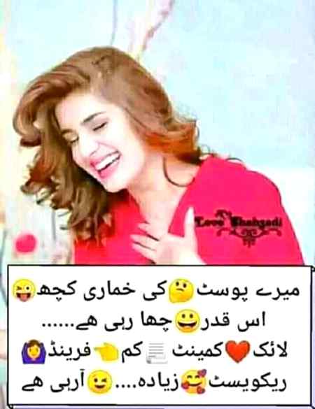 ماں : اپنے توتلے بیٹے سے۔ آج رشتے کے لیے جارہے ہیں تم وہاں پر بولنا مت ۔ بیٹا : ٹھیک ہے۔ لڑکی والوں کے گھر جب لڑکی چائے لائی۔ لڑکا چائے پیتے ہوئے بولا ۔ ہائے۔۔ درم درم۔ لڑکی بھی فورا بولی ۔ فوت مار فوت۔ ہا ہا ہا ہا ہا ہا ہا ہا ہا ہا🙈🙈🤣🤣🤣😜😜😜😜 #jhali Anu😂😝😇