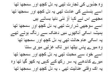 سنا ہے لوگ اسے آنکھ بھر کے دیکھتے ہیں تو اس کے شہر میں کچھ دن ٹھہر کے دیکھتے ہیں اگر وہ بولے تو باتوں سے پھول جھڑتے ہیں اگر یہ بات ہے تو بات کر کے دیکھتے ہیں کہانیاں ہی سہی مبالغے ہی سہی اگر یہ خواب ہے تو تعبیر کر کے دیکھتے ہیں 🌹❤👌⭐
