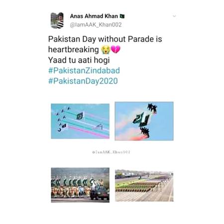 Abbaxii : Pakistan Day without parade....Remember Wing Commander Nouman Akram Shaheed... MOREβΌβ€ - 76 months ago FOLLOW 2REPLIES SHARE LINK REPORT