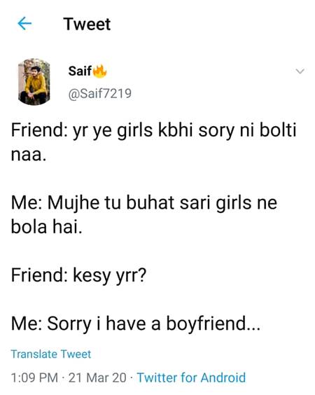 Abbaxii - 76 months ago Schools closed Colleges closedUniversities closedGym and parks closed Malls and shopping centers closedMarkets closed Many companies closed Magar yeh bachay kiyo galiyon main khulay choray huye hain 😆😄 FOLLOW 5REPLIES REPORT Abbaxii : What music do you like?? she asked. He smiled 😊 "Bullets echo with crying... MORE▼enemies 🔥" Maverick✓ - 76 months ago FOLLOW 5REPLIES SHARE LINK REPORT Abbaxii - 76 months ago Friend on call....Kia kr rha hoMe:Biryani kha rha hounHe:Akaly Akaly?Me:Nhe raita or pepsi p ha sath😄 FOLLOW 3REPLIES REPORT Abbaxii : ...😃😆😆😃... - 76 months ago FOLLOW 8REPLIES SHARE LINK REPORT Abbaxii : ...😷😍😍❤❤✌✌😷...👈👈Protect your emojis with end to end subscription...😄😄 - 76 months ago FOLLOW 4REPLIES SHARE LINK REPORT Abbaxii : Hahahah...kappas ke fasal ko abe b khatra ha...😂😄😂😄... - 76 months ago FOLLOW 0REPLIES SHARE LINK REPORT Abbaxii : Hahhah...zaida he lambi chor de ha...😄😄 - 76 months ago FOLLOW 2REPLIES SHARE LINK REPORT Abbaxii : ...😂😆😄😄... - 76 months ago FOLLOW 7REPLIES SHARE LINK REPORT Abbaxii : ...😄😄😄... - 76 months ago FOLLOW 0REPLIES SHARE LINK REPORT Abbaxii : Kyu tujy bartan dhony hn kia...😄😄😄 - 76 months ago FOLLOW 0REPLIES SHARE LINK REPORT Abbaxii : ...😂😄😄... - 76 months ago FOLLOW 0REPLIES SHARE LINK REPORT Abbaxii : Mothers be like...😆😄😄 - 76 months ago FOLLOW 0REPLIES SHARE LINK REPORT Abbaxii : ...😆😂😂😆😂... - 76 months ago FOLLOW 11REPLIES SHARE LINK REPORT Abbaxii : Boring life these days...😕😑 - 76 months ago FOLLOW 0REPLIES SHARE LINK REPORT Abbaxii : Ak ya he bachy ga bs...😷😷 - 76 months ago FOLLOW 0REPLIES SHARE LINK REPORT Abbaxii : ...✌👍👍✌✌... - 76 months ago FOLLOW 0REPLIES SHARE LINK REPORT Abbaxii : ...👍✌👍👍👍... - 76 months ago FOLLOW 0REPLIES SHARE LINK REPORT Abbaxii : Stay home stay safe...👍 - 76 months ago FOLLOW 3REPLIES SHARE LINK REPORT Abbaxii : ...stay home stay safe👍... - 76 months ago FOLLOW 0REPLIES SHARE LINK REPORT submitted by uploaded by profile: Sorry! Ap apne item ya profile ko report nahi kar saktey, na hi apne ap ko block kar saktey hain PREV NEXT ABOUT PRIVACY POLICY SIGN UP LOGIN IMAGES
