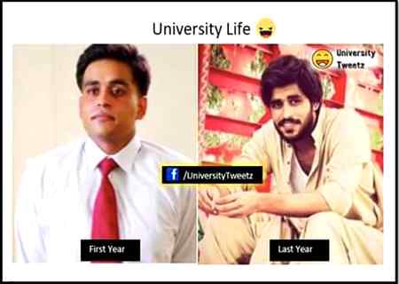 Abbaxii : University life comparison....First year vs last year....first year to boht... MOREβΌmasoom hty hn lrky mre tarahπ....phir hte ha ragging..... - 76 months ago FOLLOW 17REPLIES SHARE LINK REPORT