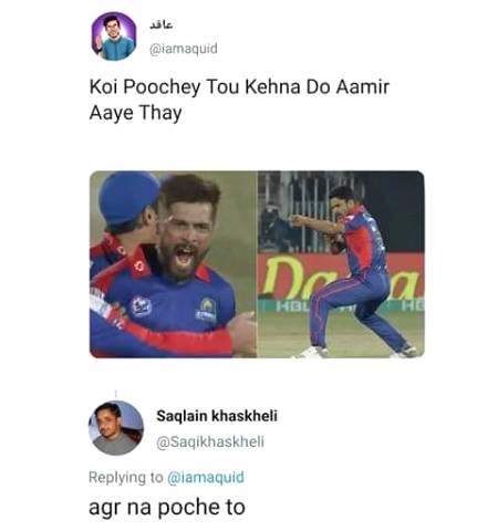 Abbaxii : What a performance by Muhammad Amir today against peshawar zalmi....4 for 25... MOREβΌββ€β€β€ - 77 months ago FOLLOW 2REPLIES SHARE LINK REPORT