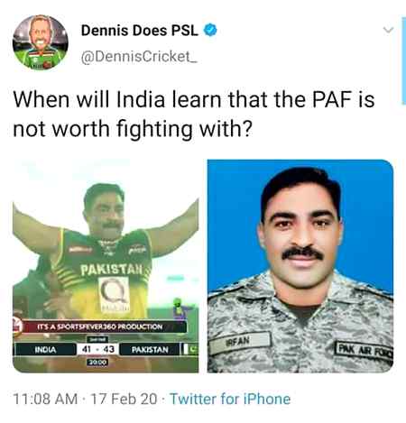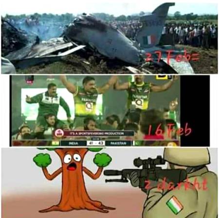 Abbaxii : پچھلے فروری میں دو طیارے✈️ گرائے تھے, اس فروری میں دو پوائنٹس سے ہرایا ہے ... MORE▼وجہ صرف ایک ہے کہ انھوں نے ہمارے دو درخت🌳🌳 گرائے تھے 😂😂🇵🇰✌️🇵🇰✌️ Pak Army zindabad 💪 - 77 months ago FOLLOW 0REPLIES SHARE LINK REPORT