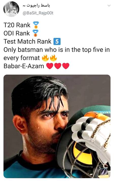 Abbaxii : Only batsman who is in top five in every formatβπ - 78 months ago FOLLOW 4REPLIES SHARE LINK REPORT