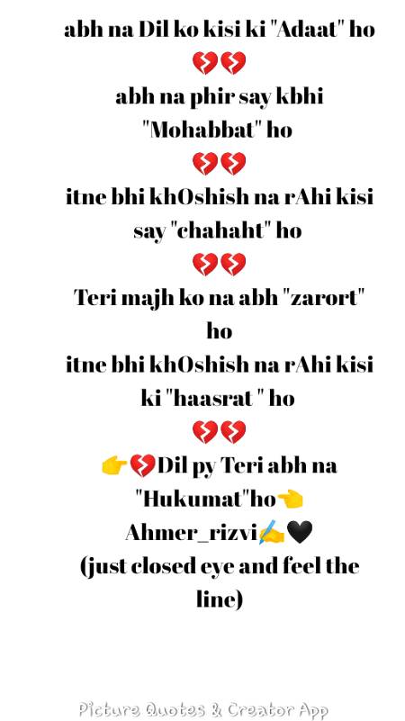 Ahmer_rizvi : 💔...."Ahmer_rizvi)"....💔 🔥(Closed eye feel line)🔥 - 77 months ago FOLLOW 14REPLIES SHARE LINK REPORT