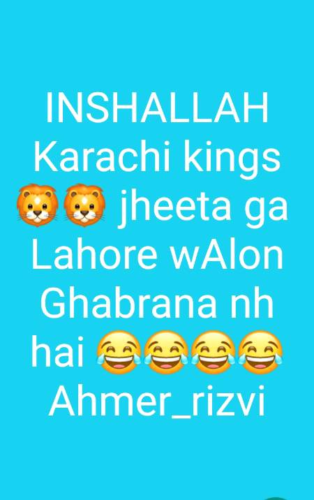 Ahmer_rizvi : Karachi kingsππππππ Lahore wAlon dekho Rona nh hai ππππ - 77 months ago FOLLOW 8REPLIES SHARE LINK REPORT