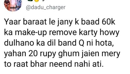 Ahmer_rizvi : 20 rupy ghum hojaYe mery to raat bhar neend NH ati ππ ππ - 78 months ago FOLLOW 0REPLIES SHARE LINK REPORT