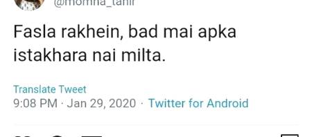 Ahmer_rizvi : Fasla rakhain bad Mai apka istakhara nh miltaππ π - 78 months ago FOLLOW 0REPLIES SHARE LINK REPORT