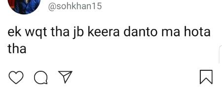 Ahmer_rizvi : Eik waqt tha jb keeera danto Mai hota thaπ€«π€« - 78 months ago FOLLOW 5REPLIES SHARE LINK REPORT