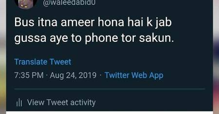 Ahmer_rizvi : Bsss itna Ameer hona hai k jab gussa aye to phone tor sakun ππππ - 78 months ago FOLLOW 0REPLIES SHARE LINK REPORT