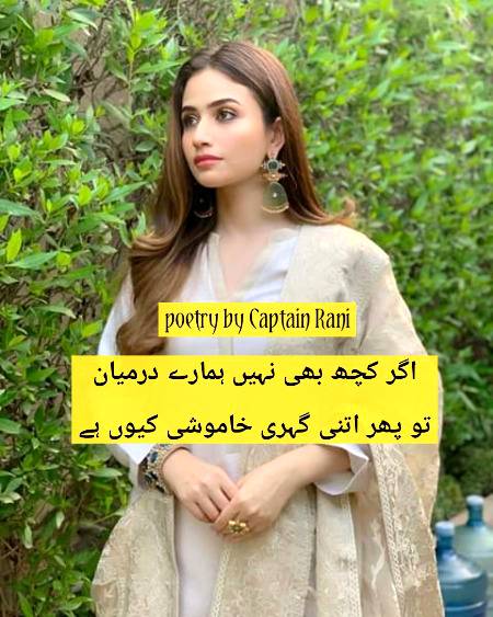 Captain_Rani - 76 months ago کتنے دور نکل گئے رشتوں کو نبھاتے نبھاتے؛خود کو کھو دیا ھم نے اپنوں کو پاتے پاتےرانی لوگ کہتے ہیں ھم مسکراتے بہت ہیں؛اور ھم تھک گئے درد کو چھپاتے چھپاتے FOLLOW 14REPLIES REPORT Captain_Rani - 76 months ago *""*Tere Urooj Se Tera ZawaL Acha Tha...!*""*Pehli Bar Tujh Se Milney Ka KhayaL Acha Tha...!*""*Her Raat Teri Yaad Aati Thi Janey Kiyun...!*""*Shayad Tera Husn_o_JamaL Acha Tha...!*""*Phir Kab Milo Gy Ay Jaan_e_Wafa...!*""*Teri Zindagi Ka Wohi SawaL Acha Tha...!*""*Loat Aao Meri Duniya Mein Wapis...!*""*Tere Sang Jeeney Ka Khayal Acha Tha...! FOLLOW 21REPLIES REPORT Captain_Rani : poetry by Captain Rani dmd user - 76 months ago FOLLOW 37REPLIES SHARE LINK REPORT Captain_Rani - 76 months ago 💔کیوں ناراض رھتے ھو میری نادان سی حرکتوں سےکچھ دن کی تو زندگی ھے پھر چلے جائیں گے ہمیشہ کے لئے. FOLLOW 90REPLIES REPORT Captain_Rani : sad poetry by Captain Rani dmd user - 76 months ago FOLLOW 33REPLIES SHARE LINK REPORT Captain_Rani : post by Captain Rani - 76 months ago FOLLOW 15REPLIES SHARE LINK REPORT submitted by uploaded by profile: Sorry! Ap apne item ya profile ko report nahi kar saktey, na hi apne ap ko block kar saktey hain PREV NEXT ABOUT PRIVACY POLICY SIGN UP LOGIN IMAGES