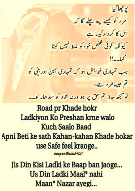 Ebahat_ali : Insaniyat ho to apna qasoor kisi aurat k sar na dalna. - 73 months ago FOLLOW 10REPLIES SHARE LINK REPORT