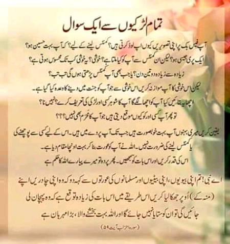 Ebahat_ali : Is post ko jo bhi parda krny wali larki parhy gi us ko khud par naaz ho ga... MORE▼islam ki beti hony pr - 75 months ago FOLLOW 12REPLIES SHARE LINK REPORT