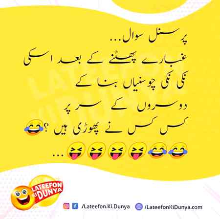 ایک دن وہ ہم سے ملی اور بولی کیا تم مجھے یاد نہیں کرتے....؟ میں نے کہا.... اگر یاد کرنا اتنا آسان ہوتا تو ہم اپنی کلاس میں ٹاپ نہ کر لیتے....... 🤣🤣🤣🤣🤣🤣