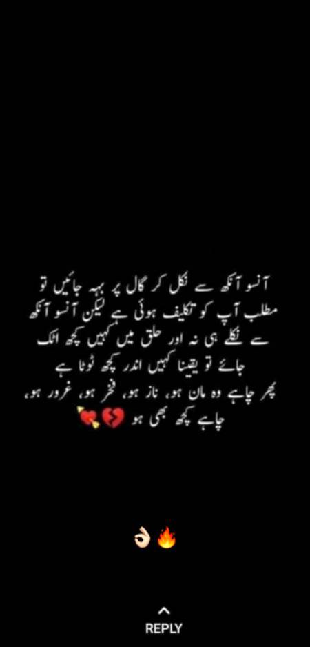 Maarij_khan : True... Nice but painful linesππ₯ - 79 months ago FOLLOW 0REPLIES SHARE LINK REPORT