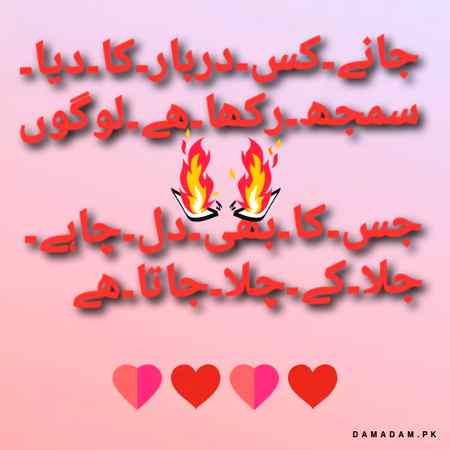 Attitude Status Mariagull - 79 months ago غم۔۔۔۔۔۔۔زندگی۔۔۔۔۔۔۔۔تیری۔۔۔۔۔۔۔راہ۔۔۔۔۔۔۔میں۔۔۔۔شب۔۔۔۔۔۔آرزو۔۔۔۔۔۔۔تیری۔۔۔۔۔۔۔چاہ۔۔۔۔۔۔۔۔۔۔میں۔۔۔جو۔۔۔۔۔اجڑ۔۔۔۔۔۔۔گیا۔۔۔۔۔وہ۔۔۔۔بسا۔۔۔۔۔۔۔نہیں۔۔۔۔۔جو۔۔۔۔۔۔بچھڑ۔۔۔۔۔۔۔گیا۔۔۔۔۔۔۔وہ۔۔۔۔۔۔۔۔ملا۔۔۔۔۔نہیں۔ FOLLOW 15REPLIES REPORT Mariagull : Urdu..poetry - 79 months ago FOLLOW 2REPLIES SHARE LINK REPORT submitted by uploaded by profile: Sorry! Ap apne item ya profile ko report nahi kar saktey, na hi apne ap ko block kar saktey hain PREV NEXT ABOUT PRIVACY POLICY SIGN UP LOGIN IMAGES