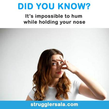 Mishaal.khan786 : This is one of the weird fact u can test out for yourself.Normally when u... MOREβΌhum,the air is able to escape through your nose to create the sound,and it can't do that when u are holding it shut. Go a head try it... - 74 months ago FOLLOW 2REPLIES SHARE LINK REPORT