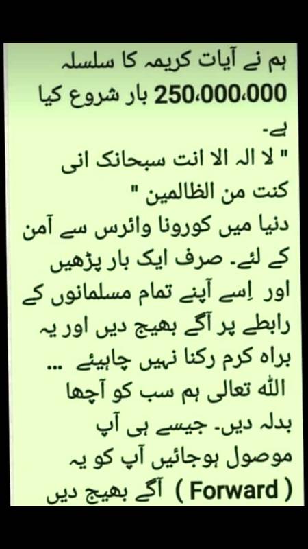 دنیا میں کروناوائرس سے امن کے لیے.صرف1بار پڑھ کے آگے بھیجیں