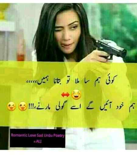 ایک دن کوئ نہیں نے کسی کو مار دیا اس وقت دماغ باتروم میں نہا رہا تھا پاگل نے پولس کو فون کیا ہیلو پولس کوئ نہیں نے کسی کو مار دیا پولس نے کہا پاگل ہے کیا پاگل نے کہا ہاں میں پاگل ہوں پولس نے کہا دماغ نہیں ہے کیا پاگل بولا دماغ باتروم میں نہا رہا ہے پولس بولا ارے بیوقوف ہے کیا پاگل بولا نہیں میں پاگل ہوں بیوقوف تو میسج پڑھ رہا ہے