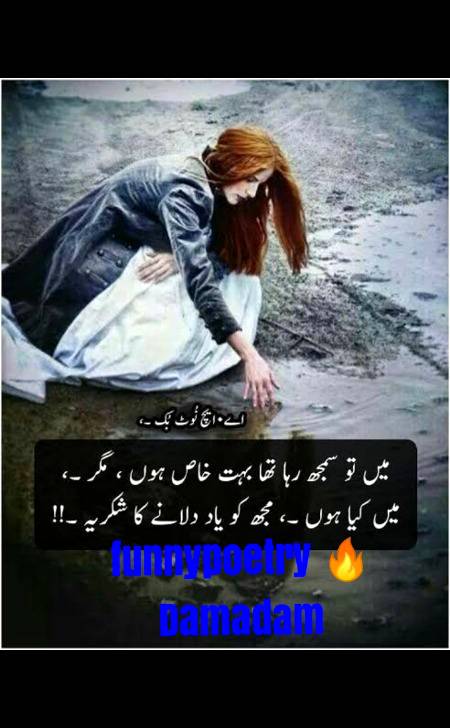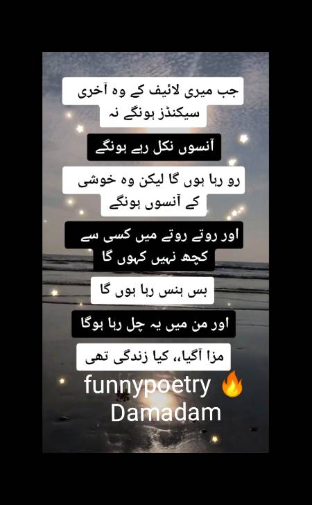 funnypoetry : WO Jo smjhy thy k tamasha hoga,,humny khamosh rah kr bazee he badal dee - 75 months ago FOLLOW 26REPLIES SHARE LINK REPORT