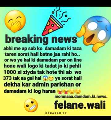 momnaaa - 74 months ago Breaking news damadam par 43 hours si ek bhi post ya pic trending par nhi aai 😱😱😱😯😯😯 lagya hai ki damadam par achi posts par ziyda likes nhi malta hai isliye trending par nhi aai 😜😜🤭🤭 FOLLOW 0REPLIES REPORT momnaaa : .... 😬😬😬..... - 74 months ago FOLLOW 11REPLIES SHARE LINK REPORT momnaaa : Mazeed ise news or malomat ki liye meri posts ka in tzar kiya kary. 😜😜😜... - 74 months ago FOLLOW 15REPLIES SHARE LINK REPORT momnaaa : Bas ise hai mala mal ho jao ga 🤣🤣🤣 - 74 months ago FOLLOW 2REPLIES SHARE LINK REPORT submitted by uploaded by profile: Sorry! Ap apne item ya profile ko report nahi kar saktey, na hi apne ap ko block kar saktey hain PREV NEXT ABOUT PRIVACY POLICY SIGN UP LOGIN IMAGES