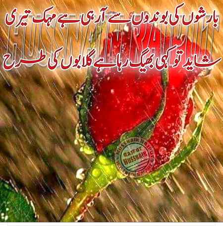 rida88 - 78 months ago بارش کی بوندوں سے آ رہی ہے مہک تیری شاید تو کہیں بھیگ رہا ہے گلابوں کی طرح FOLLOW 17REPLIES REPORT submitted by uploaded by profile: Sorry! Ap apne item ya profile ko report nahi kar saktey, na hi apne ap ko block kar saktey hain PREV NEXT ABOUT PRIVACY POLICY SIGN UP LOGIN IMAGES
